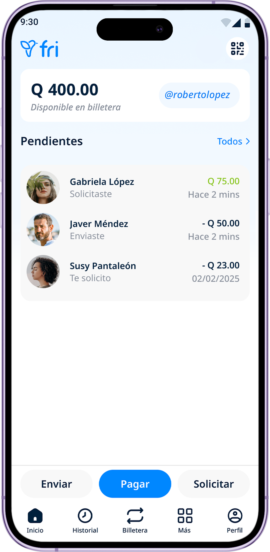 Mandá una solicitud de pago a otro usuario fri o número de teléfono por medio de un QR o link.